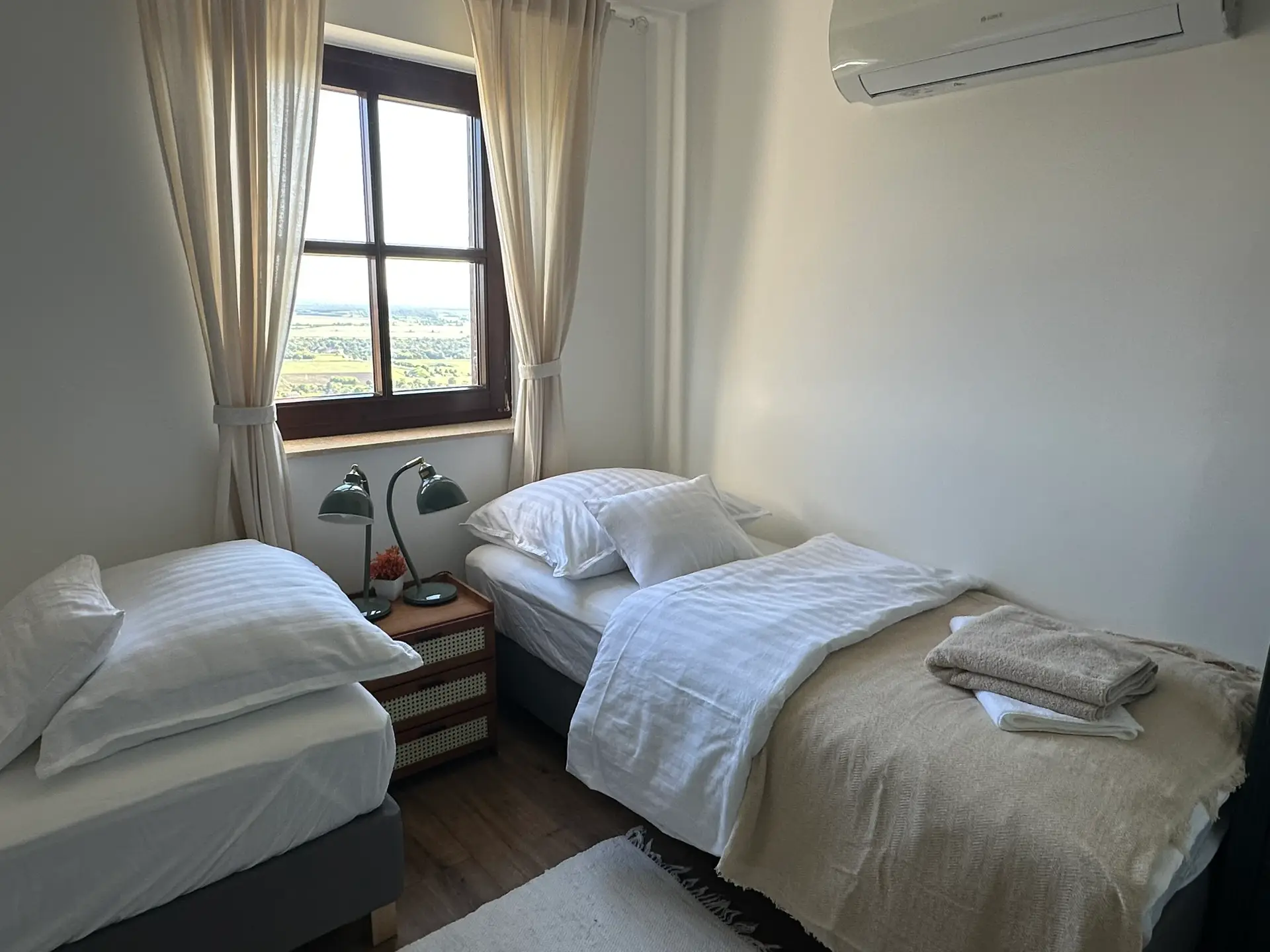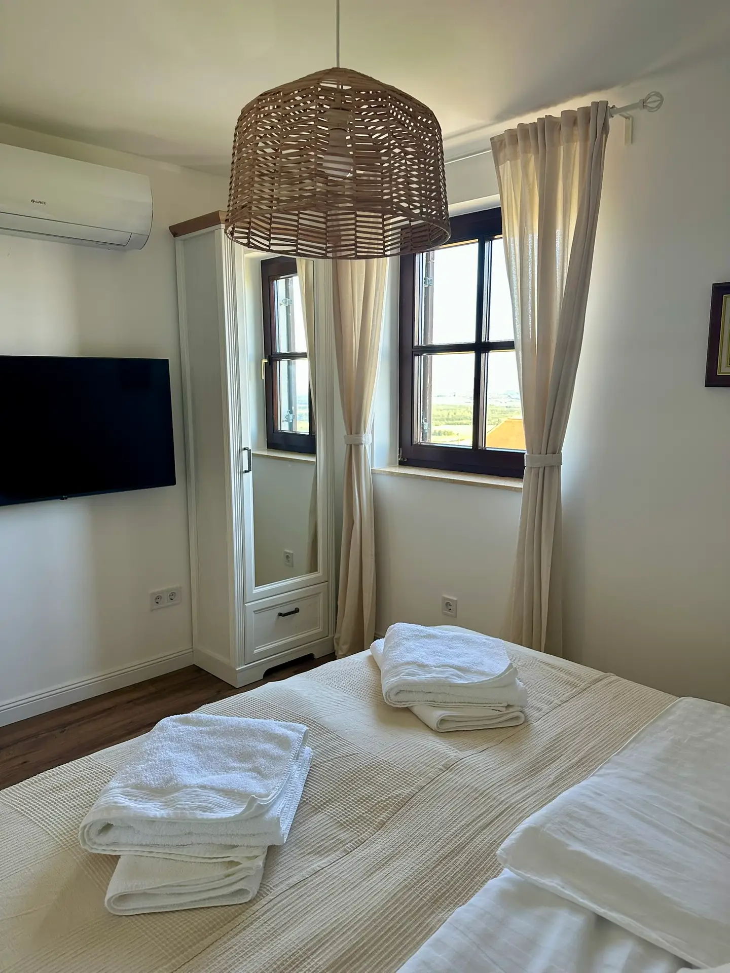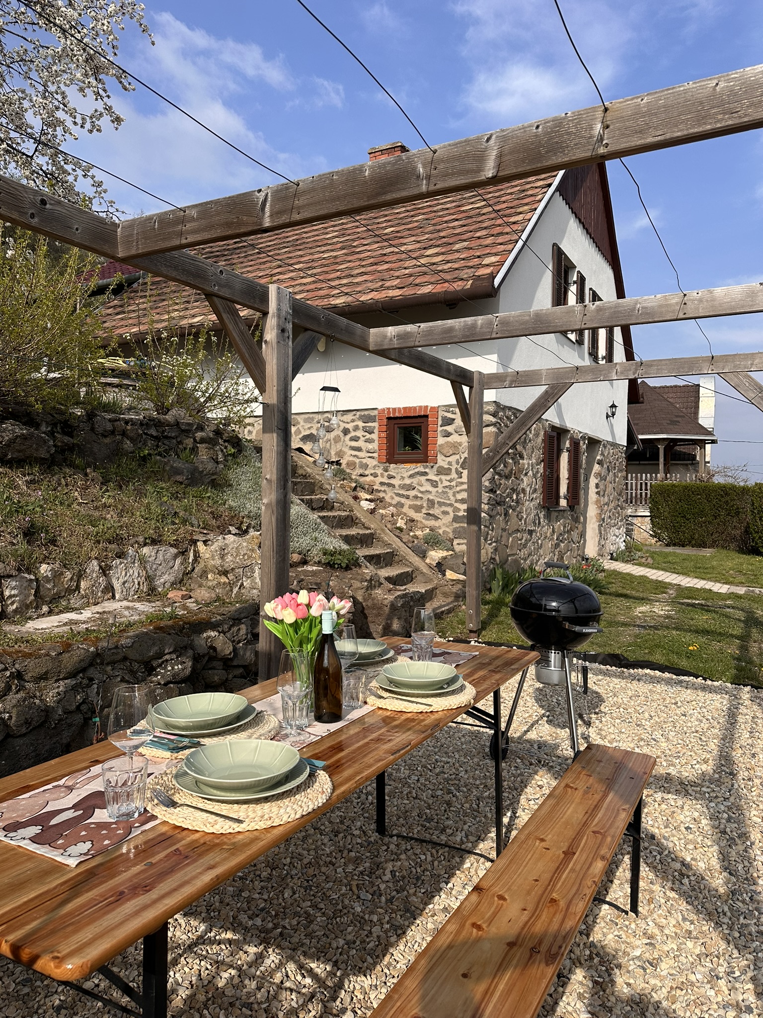 Felszereltség/galéria Konyha, étkező SütőFőzőlapMikrohullámú sütőHűtőszekrény, fagyasztóMosogatógépKávéfőzőVízforralóKenyérpirítóKávé és tea bekészítés Fürdőszobák ZuhanyzóTörölközőszárító radiátorHajszárítóMosógépVasaló, vasalódeszkaSzárogató kötél Szobák TVKlíma1 szoba franciaágy1 szoba két egyszemélyes ágy1 szoba egy egyszemélyes ágyÉjjeliszekrények olvasólámpával Udvar Faszenes grillBográcsTárcsaNyársakNyugágyakKerti garnitúraFedett terasz Egyéb Közös térben kihúzható kanapé 2 fő részéreGyerekbarát kiegészítők: etetőszék, kiságy, wc szűkítő, fellépőTársasjátékokAutóbeálló a ház előttWifiSzéfKemence Képek